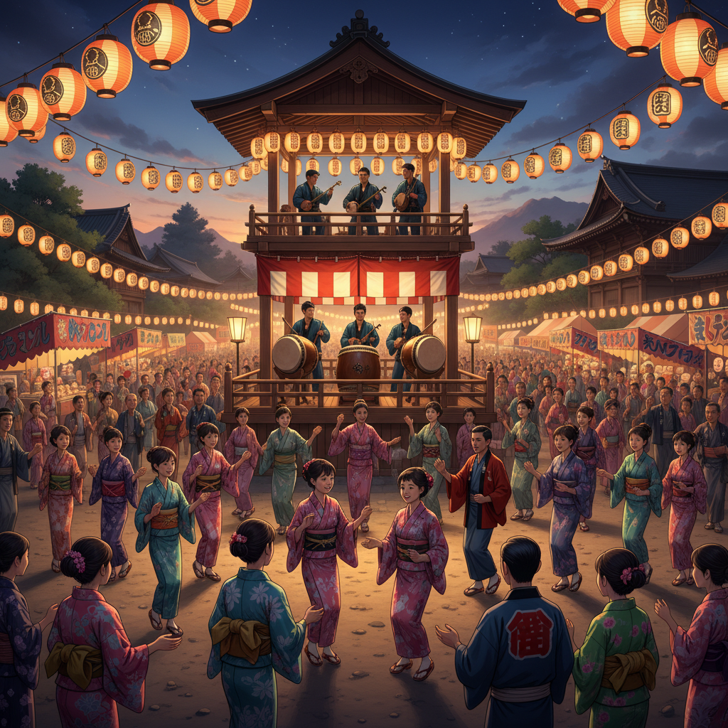 - 歴史的な社交の場としての役割:江戸時代には男女の出会いの場として機能した [25]。故郷を離れた人々の里帰りや再会の機会でもあった [25]。現代でも、家族や親戚が集まるお盆期間の中心的なイベントとなっている [26]。
