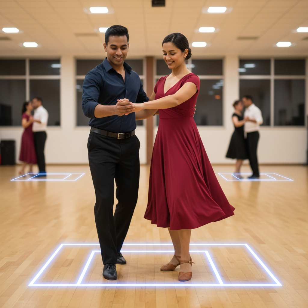 スクエアルンバの基本ステップ「スクエアベーシックムーブメント」(ボックスステップ)は、正方形を描く単純な構成で覚えやすく、繰り返し練習することで体に馴染みます。 複雑なルーティンを一度に覚える必要がなく、基礎の動きに集中できるため、初心者は自信をつけやすいです。